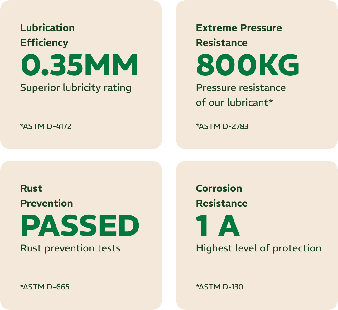 2.5 billion gallons of lubricant are sold annually in North America, an estimated 60% winds up in groundwater. We use renewable resources safe for marine life.